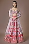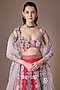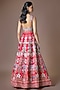 Featuring a red lehenga in raw silk base with applique embellishments. It is paired with a scalloped blouse and a tulle dupatta. Accentuate the designer lehenga with soft curls, kundan polki or swarovski jewellery, embellished heels and a potli bag for a traditional bridal look, Perfect wear for your royal weddings or engagement ceremony.