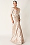 Featuring a rose champagne saree in banarasi tissue brocade base with applique embellishment. It is paired with a brocade blouse. Accentuate it with silver jewellery, a clutch and heels for a sangeet, engagement or wedding ceremony.