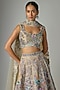 Featuring a sandstone lehenga in tulle base with applique embellishments. It is paired with a blouse and a dupatta. Accentuate it with statement jewellery and heels for weddings, sangeet nights or grand festive celebrations.