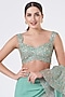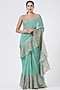 Featuring a sea green ruffled saree in organza base with animal print and embellishment. It is paired with a matching blouse. Accentuate with statement jewellery and heels for a festive occasion or wedding ceremony.