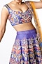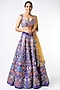 Featuring a violet lehenga in raw silk base with nakshi and applique embellishments. It is paired with a matching blouse and a net cutwork dupatta.