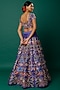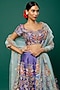 Featuring a violet kali lehenga in raw silk base with applique embellishments. It is paired with a matching blouse and cutwork dupatta.