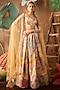 Featuring a yellow box pleated skirt in organza base with pastiche applique embellishments and print. It is paired with matching blouse and a net scalloped dupatta. Perfect wear for festive occasions or wedding ceremonies.