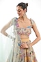 Featuring a yellow lehenga in raw silk base with applique embellishments. It is paired with a blouse and a dupatta. Accentuate with statement jewellery and heels for a complete wedding-ready look.