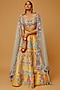 Featuring a yellow kali lehenga in raw silk base with applique embellishment. It is paired with a matching blouse and a net dupatta having cutwork.