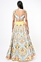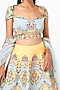 Featuring a yellow lehenga in raw silk base with applique embellishments. It is paired with a matching blouse and a cutwork dupatta.