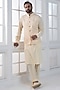Beige Silk Brocade Hand Embroidered Nehru Jacket Set