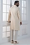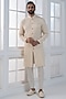Featuring a beige kurta in silk base with sequins hand and machine embroidery. It is paired with a kurta and pants. Style it with a mojaris for a festive occasion, wedding or engagement ceremony.