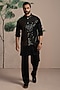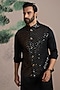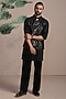Featuring a black nehru jacket in sequins and cotton satin base with embroidery. It is paired with a kurta and pants. Perfect wear for any festive occasions or destination wedding, exuding charm and elegance.