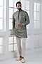 Featuring a bottle green kurta in sequin and cotton satin base with embellishment. It is paired with pants. Perfect for a festive occasion or pooja ceremony, exuding charm and elegance.