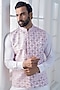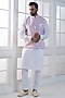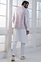 Featuring a lavender nehru jacket in cotton satin base with sequins hand and machine embroidery. It is paired with a kurta and pants. Style it with a mojaris for a festive occasion, wedding or engagement ceremony.