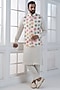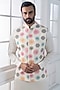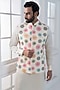 Featuring a multi-colored nehru jacket in silk base with dori work, hand and machine embroidery. It is paired with a kurta and pants. Style it with a mojaris for a festive occasion, wedding or engagement ceremony.