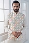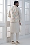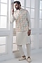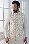 Featuring a multi-colored nehru jacket in silk base with dori work, hand and machine embroidery. It is paired with a kurta and pants. Style it with a mojaris for a festive occasion, wedding or engagement ceremony.