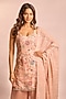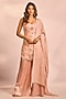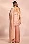 Featuring a peach kurta in modal satin base with hand embellishment. It is paired with embroidered sharara pants and a georgette dupatta. Accentuate it with statement jhumkas and embellished heels for a stylish ensemble, ideal for wedding festivities, festive gatherings or sangeet celebrations.