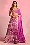 Featuring a purple lehenga in brocade base with zardosi hand embellishment. It is paired with an embroidered blouse and a tissue dupatta. Accentuate it with statement jewellery, a sleek bun and embellished heels for a stylish ensemble, ideal for wedding festivities, sangeet celebrations or grand festive occasions.