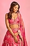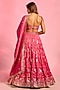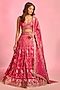 Featuring a rani pink lehenga in brocade base with hand embellishment. It is paired with an embroidered blouse and a tissue dupatta. Accentuate it with statement jewellery, a sleek bun and embellished heels for a stylish ensemble, ideal for weddings, sangeet celebrations or engagement ceremonies.