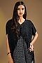 Featuring a black pleated midi dress in silk blend base with batwing sleeves and magenta fringe detailing. Accentuate it with statement earrings and heels for an after party or evening look.