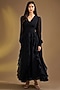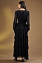Featuring a black maxi dress in silk blend base with a v-neckline and cascading ruffled detail. Accentuate it with statement earrings and heels for an after party or evening look.