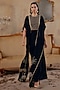 Featuring a black cape-style overlay in velvet base with gold embroidery. It is paired with wide-leg pants. Accentuate it with dangler earrings and heels for festive gatherings, evening soirees or cocktail events.