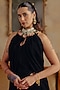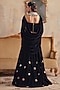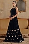 Featuring a black corset in velvet base with mirror embellishments. It is paired with a skirt and cape sleeves. Accentuate it with dangler earrings and heels for festive gatherings or sangeet nights.