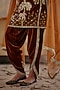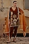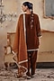 Featuring a bronze straight kurta in velvet base with mirror embellishments. It is paired with a dhoti and an organza dupatta. Accentuate it with kundan polki earrings and heels for festive occasions, pooja or sangeet ceremony.