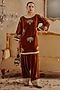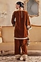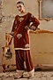 Featuring a bronze kurta in velvet base with motif embellishment. It is paired with mirror embellished salwar. Accentuate it with kundan polki earrings and heels for festive occasions, pooja or sangeet ceremony.