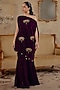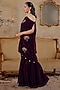 Deep Wine Velvet Motif Embroidered One-Shoulder Tunic Set