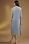 Featuring a grey midi dress in silk blend base with a v-neckline and gold geometric detailing. Accentuate it with statement earrings and heels for an after party or evening look.