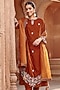 Featuring a honey gold straight kurta in cotton silk and organza base with embroidery. It is paired with matching embroidered pants and a dupatta.