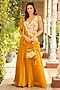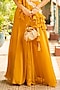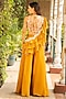 Featuring a mustard blouse in georgette base with embroidery. It is paired with sharara pants, an embroidered ruffled drape. Accentuate it with statement earrings and heels for haldi ceremonies.
