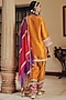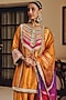 Featuring a mustard yellow kurta in silk blend and organza base with gota patti work and mirror embellishment. It is paired with patiala salwar pants having gota lace detail and an ombre dupatta. Accentuate it with statement jewellery, a clutch and block heels for pre-wedding ceremonies.