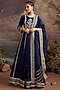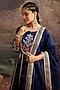 Featuring a navy blue anarkali in cotton silk base with embroidery and lace detailing. It is paired with matching pants and an organza dupatta.