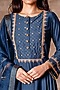 Featuring a navy blue kalidar anarkali in cotton silk, net lycra, and organza base with pearl, beads, kiran dori, dhagai, zardosi, and resham embroidery. It is paired with matching churidar pants and a dupatta.