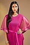 Featuring a pink wrap-style kaftan dress in silk blend base with sheer flutter sleeves and golden weave detailing. Accentuate it with statement earrings and heels for an after party or evening look.