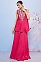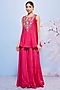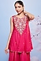 Featuring a rani pink short A-line kurta in chiffon and cotton lycra base with embroidery. It is paired with a bustier and sharara pants.