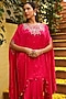 Rani Pink Chiffon Crystal Detailed Kaftan Set