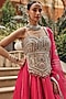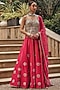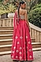 Featuring a rani pink lehenga in silk blend and organza base with mirror boota work. It is paired with a corset style blouse having mirror, sequins and bead embellishment, including a net dupatta. Accentuate it with statement jewellery, a clutch and block heels for weddings or sangeet ceremonies.