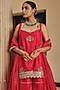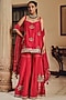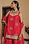 Featuring a rani pink kurta in silk blend and organza base with palm tree motifs and mirror work. It is paired with sharara pants and a gota embroidered dupatta. Accentuate it with statement jewellery, a clutch and block heels for sangeet ceremonies.