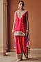 Featuring a rani pink kurta in silk blend and organza base with mirror and paisley embroidery. It is paired with salwar pants having gota and mirror work, including a multi-colored dupatta. Accentuate it with statement jewellery, a clutch and block heels for pre-wedding ceremonies.