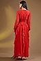 Featuring a red maxi dress in silk blend base with a v-neckline and cascading ruffled detail. Accentuate it with statement earrings and heels for an after party or evening look.
