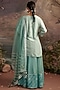 Featuring a sea green kurta in dupion silk base with embroidery. It is paired with matching sharara pants having gota embellishments and an organza dupatta.