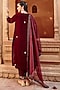Featuring a wine straight kurta in cotton silk and organza base with embroidery. It is paired with matching embroidered pants and a dupatta.