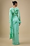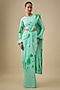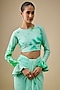 Featuring an aqua and green tie-dye pre-stitched saree in lycra stretch base. It is paired with a blouse. Accentuate it with statement jewellery and heels for festive occasions or wedding ceremony.