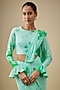 Aqua & Green Lycra Stretch Tie-Dye Pre-Stitched Saree Set