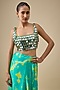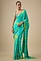 Featuring an aqua and yellow hand tie-dye saree in pure satin silk base. It is paired with a blouse having mirror tassel work. Accentuate it with statement jewellery and heels for festive occasions or wedding ceremony.