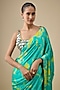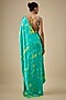 Aqua & Yellow Pure Satin Silk Hand Tie-Dye Saree Set
