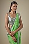 Featuring a green and aqua hand tie-dye saree in georgette base. It is paired with a blouse having mirror border and mirror handwork. Accentuate it with statement earrings and heels for festive occasions or wedding ceremony.