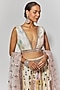 Ivory Raw Silk Hand Tie-Dyed & Hand Embroidered Lehenga Set