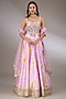 Featuring a lilac and yellow hand tie-dyed lehenga in raw silk base. It is paired with a blouse having mirror detailing and a net dupatta. Accentuate it with statement earrings and heels for weddings or sangeet ceremonies.