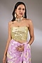 Featuring a lilac and yellow hand tie-dyed saree in sequins base. It is paired with a blouse having mirror detail. Accentuate it with statement earrings and heels for weddings or sangeet ceremonies.